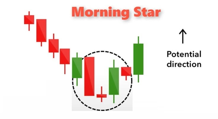 With the market downtrend coming to an end, the Morningstar candle chart is seen as a sign of hope. This is a three-candle diagram. It includes a long bearish candle and a long bullish candle, on either side of a short solid candle.